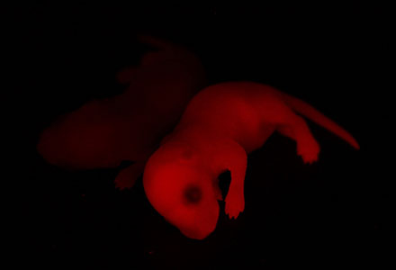 Camera with modified macro ring light. Photos of BFP, GFPemd and DsRed mice are shown in Figure 3, 4 and 5.For imaging signals other than fluorescence, the existence of body fluid is tested and can be detected (Figure 6).