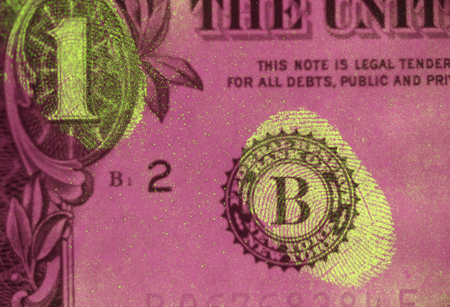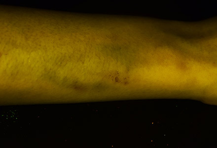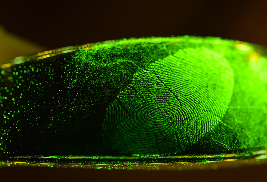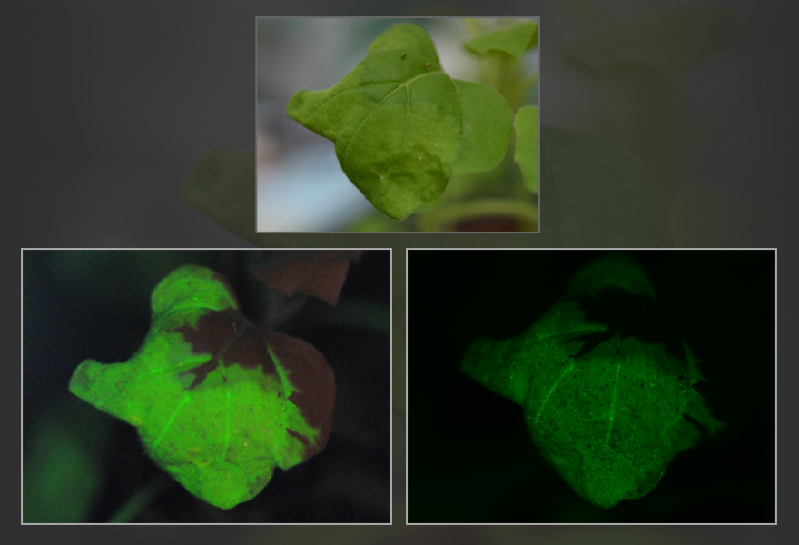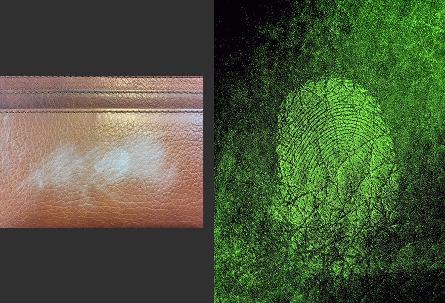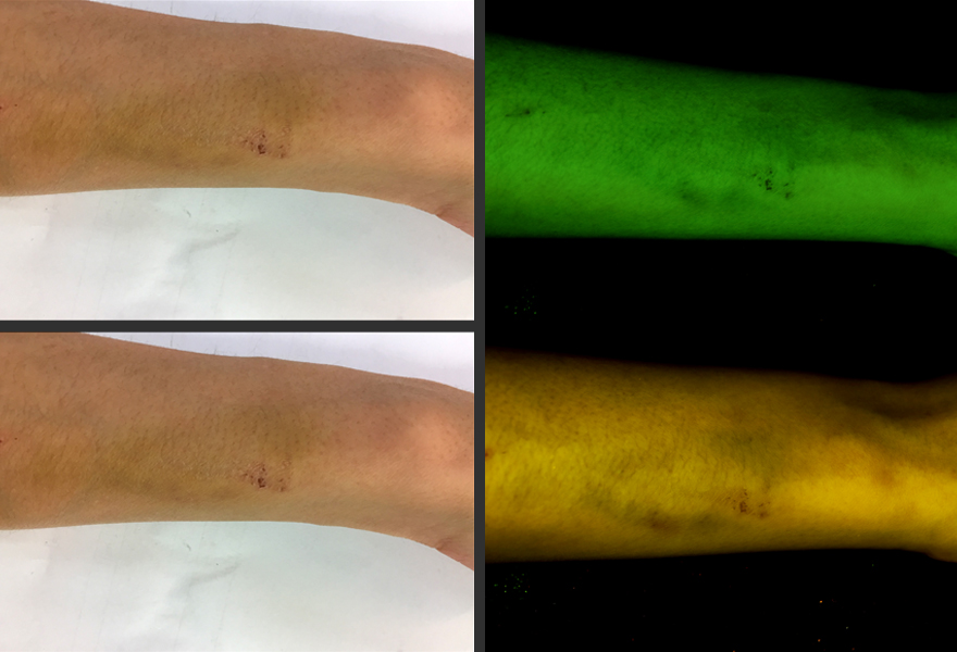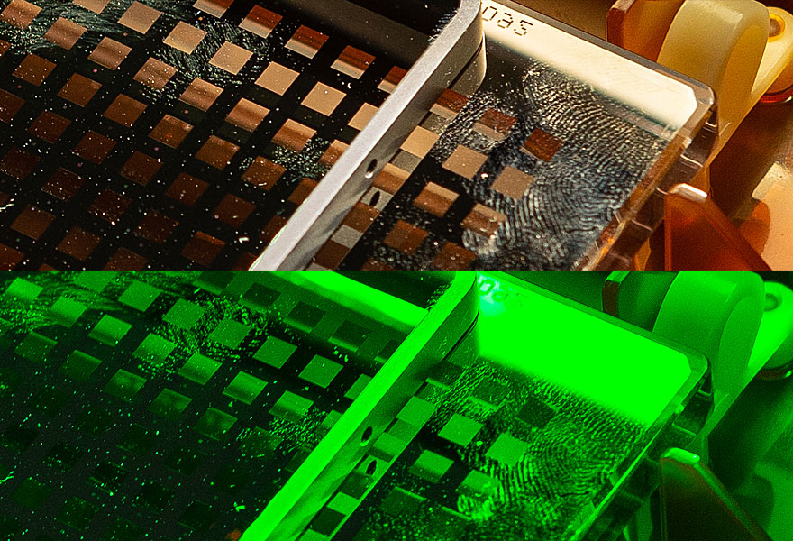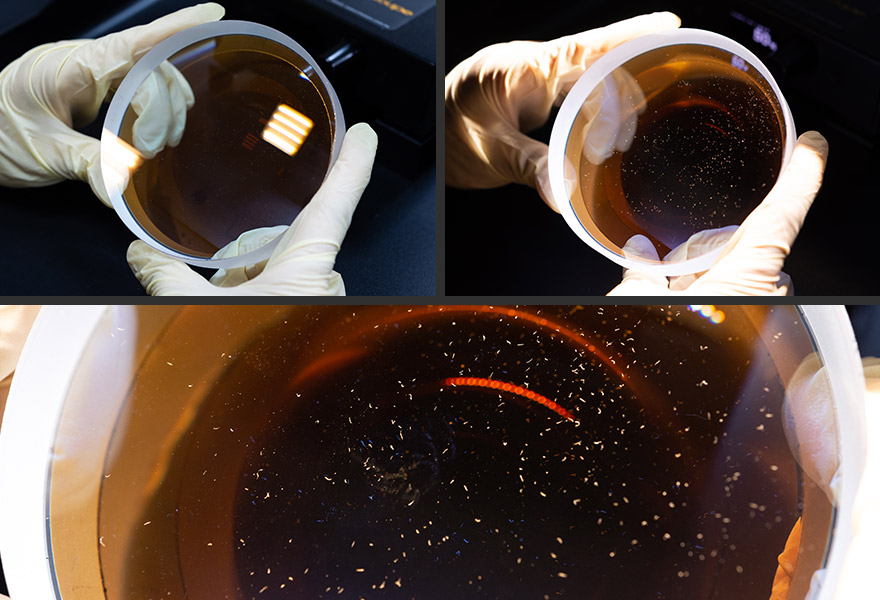 Searching for Wafer alien particles / scratch inspection Comparison : (Left) Under ambient light ; (Right) Under collimated green light