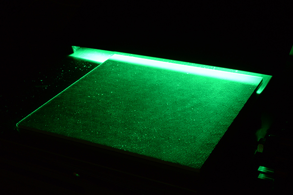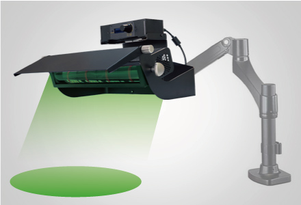 Compared to the current Japanese brand inspection lamps which only have a circular area collimated detection light source with a diameter slightly larger than 2.5 cm, our MK2 can still provide a uniformly collimated large area light field even on a 20x20cm workpiece.